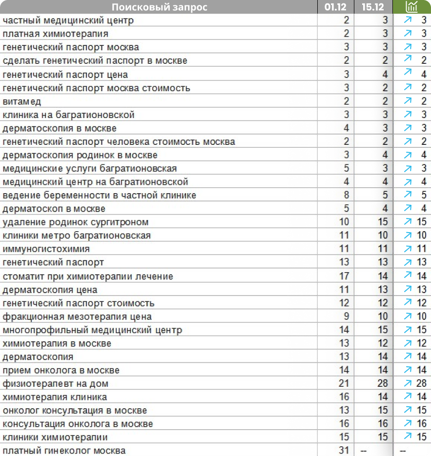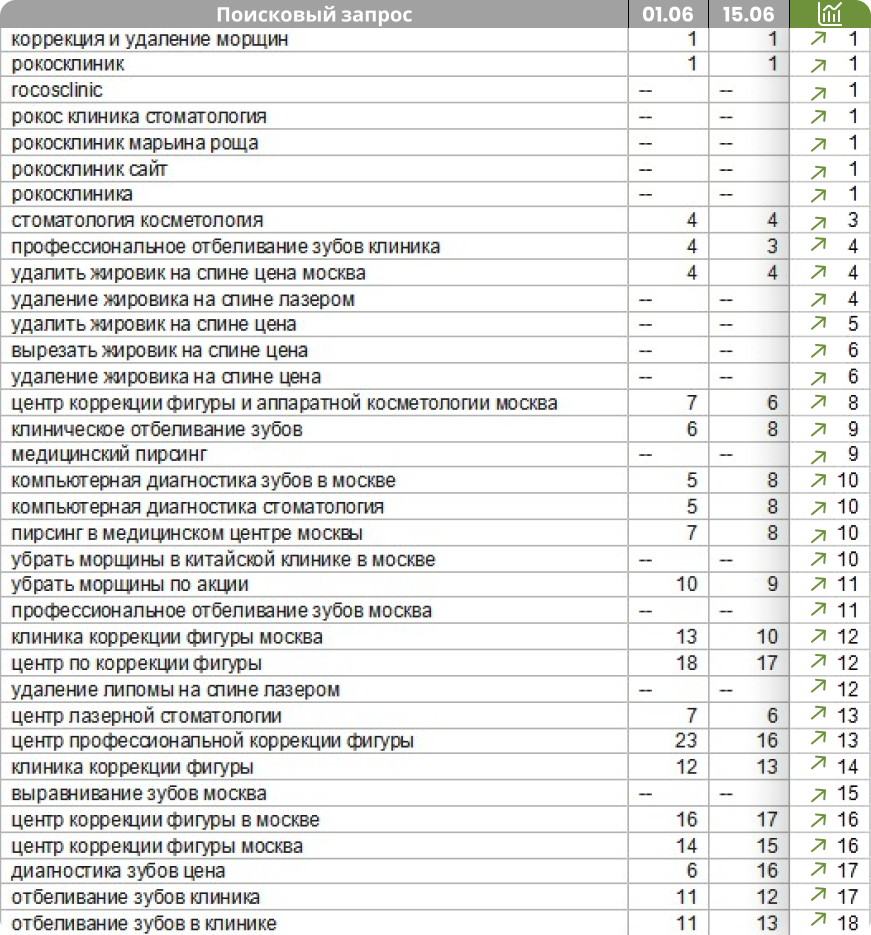 Мониторинг позиций сайта в выдаче результатов поиска по целевым запросам в поисковых машинах в целях оперативного реагирования на изменения в алгоритмах ранжирования и в конкурентной ситуации среди сайтов аналогичной тематики